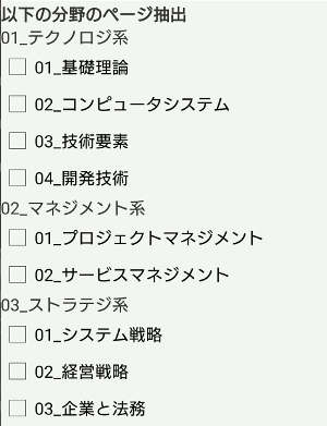 以下の大分類 ■ テクノロジ系 ■ マネジメント系 ■ ストラテジ系 に直属の中分類を抽出します。 |