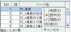 例えば 『00_基数』ページを『✓既読』に設定すると、以下のように表示します。 |