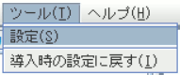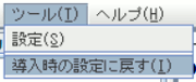 メニューバーのツール(T)を選択 ● 導入時の設定に戻す(I) をクリックし、変更した値を導入時の設定に戻します。 |