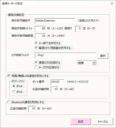 通信ログを記録する キーログを記録するに設定した場合、スマートフォンの接続より切断までのキーロガーを保存します。 ログ出力が不要である場合、設定をオフにしてください。 |