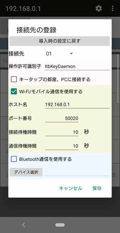 Wi-Fi/モバイル通信の接続ポートは、Windowsアプリと同じ番号に設定してください。 |