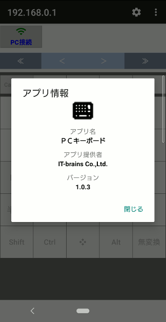 OverFlowメニューの[アプリ情報]をタップし、アプリ情報画面を表示します。