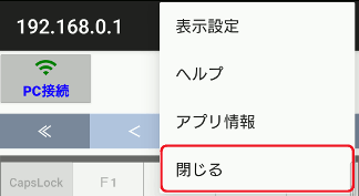 OverFlowメニューの[閉じる]をタップし、本アプリを終了します。