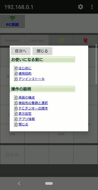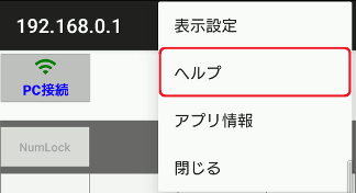 OverFlowメニューの[ヘルプ]をタップし、ヘルプ画面を表示します。