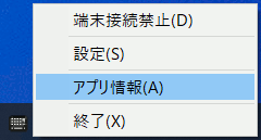 タスクトレイの『遠隔キーボードアイコン』を右クリックし、メニューを表示します。 |