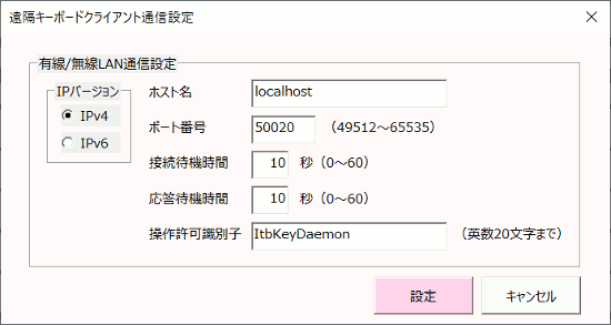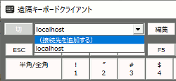 接続先『遠隔キーボード』の通信情報を登録します。 新規に追加(最大20登録可)する場合は ●(接続先を追加する) を、登録済みの内容を編集する場合は ●対象ホスト名 を選択します。 |