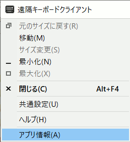 遠隔キーボードクライアントのアプリ情報